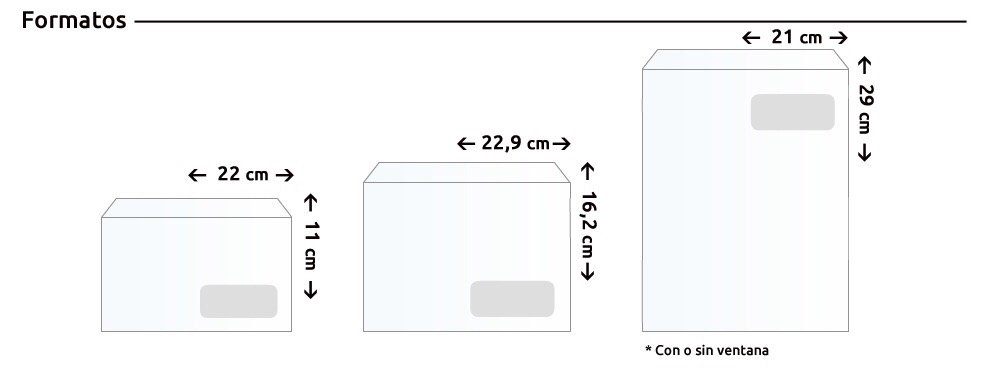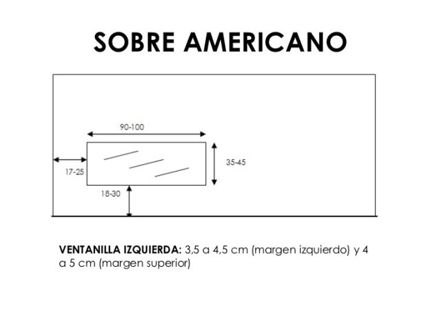 Sobre americano las medidas son 210x110mm y el sobre americano prolongado 215×115 es el sobre más común para correspondencia sobre todo comercial.