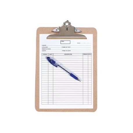 Un elemento muy común en almacenes o sitios donde hay que tomar notas es la carpeta de pinza el conocido con el termino anglosajón clipboard.
